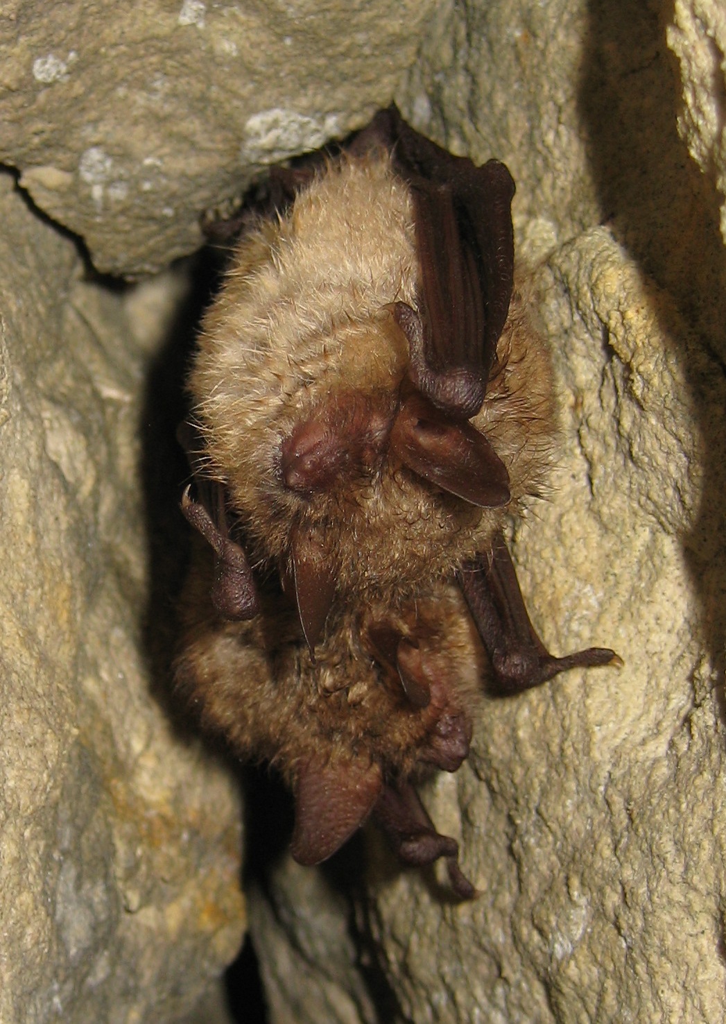Hibernation : hiberne d’octobre à fin avril, de façon isolée dans d’étroites fissures ou en essaims compacts suspendus au plafond.